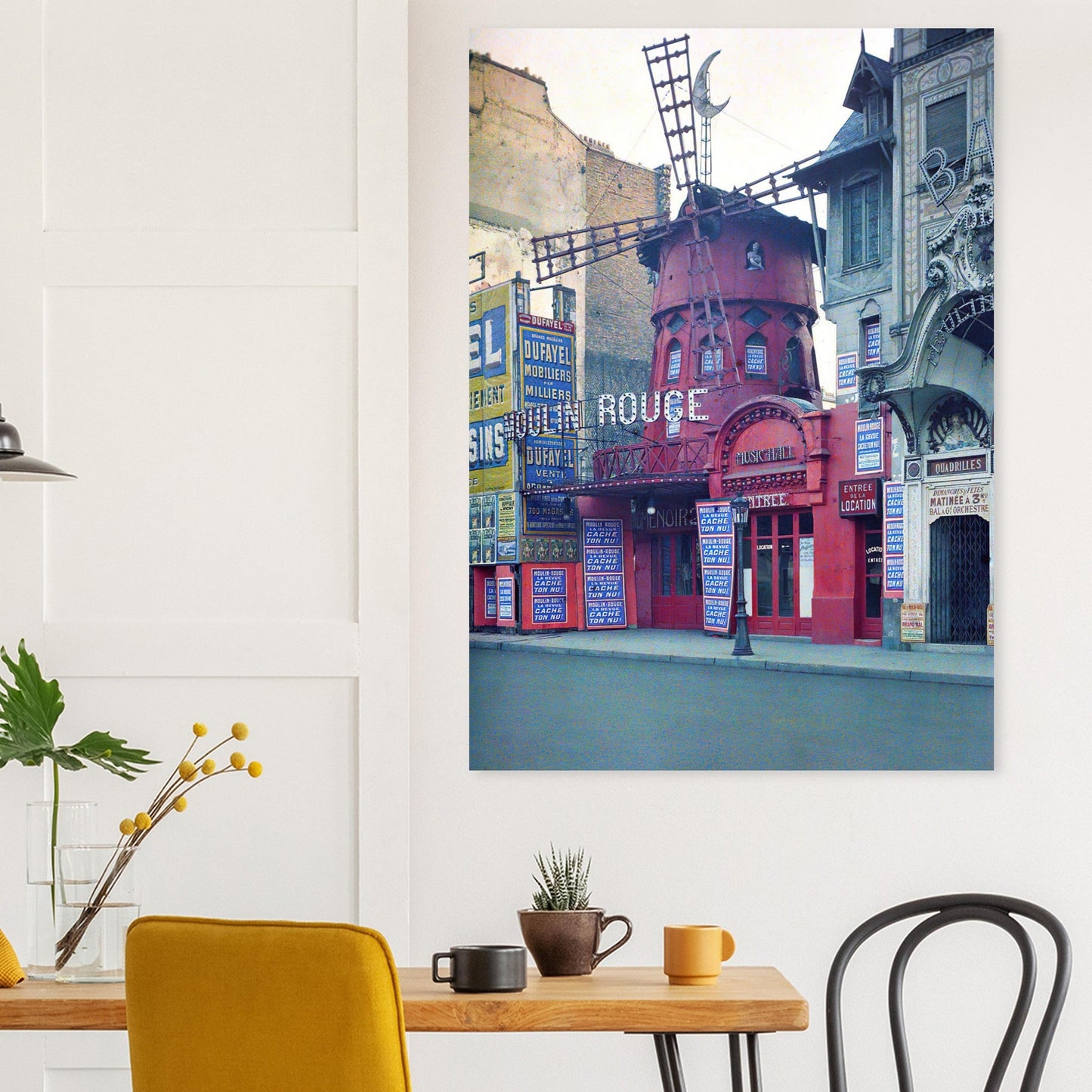 Posterify.eu offers a premium matte paper poster featuring the iconic Moulin Rouge in Paris, 1914. This public domain image is printed on a heavier-weight, white paper with a smooth uncoated finish, giving it a luxurious feel.