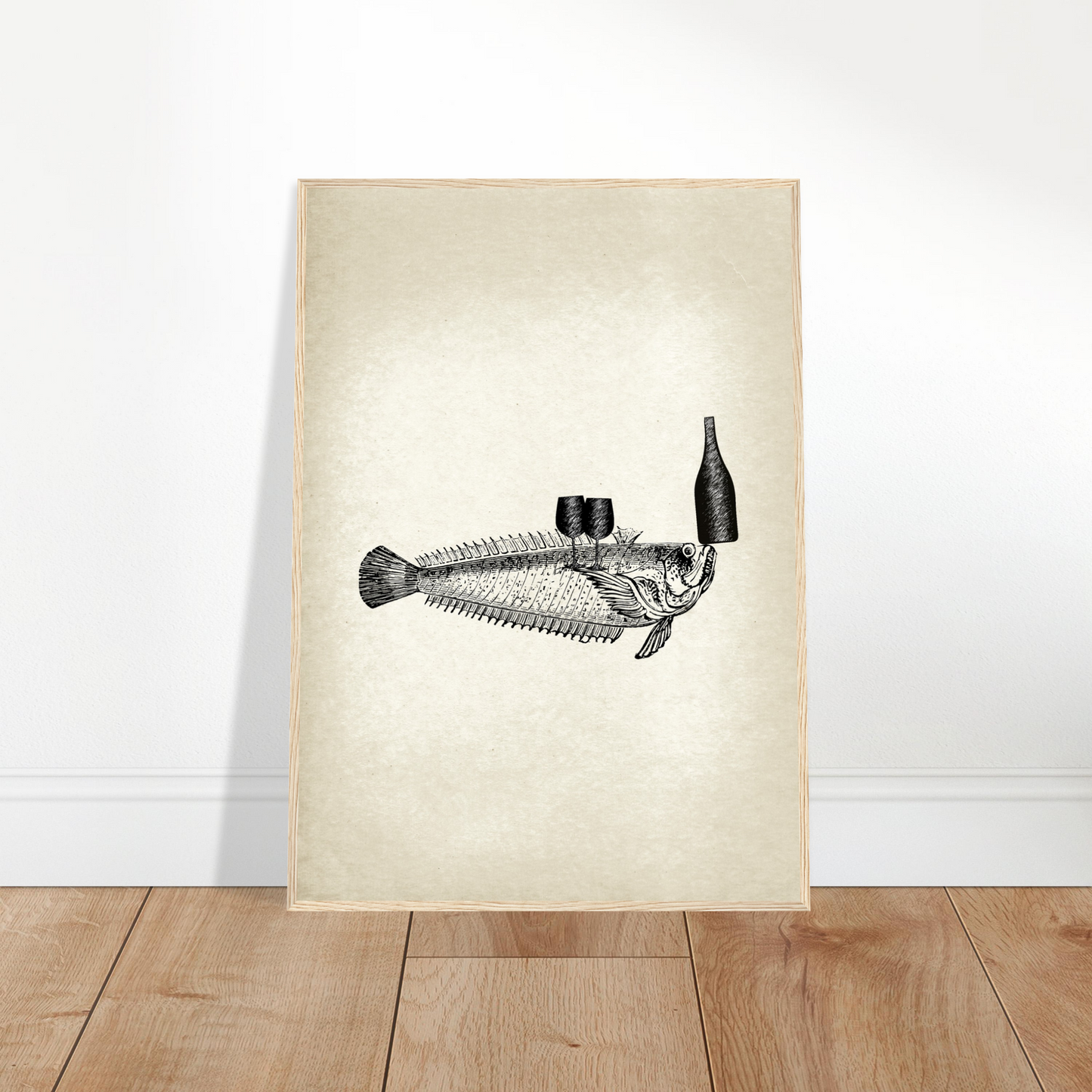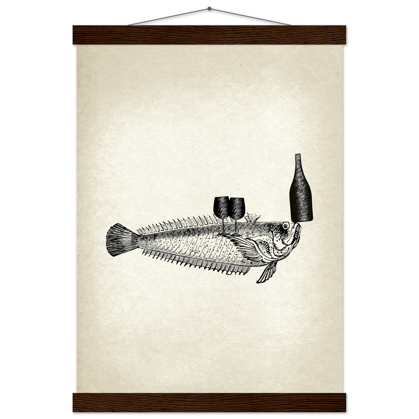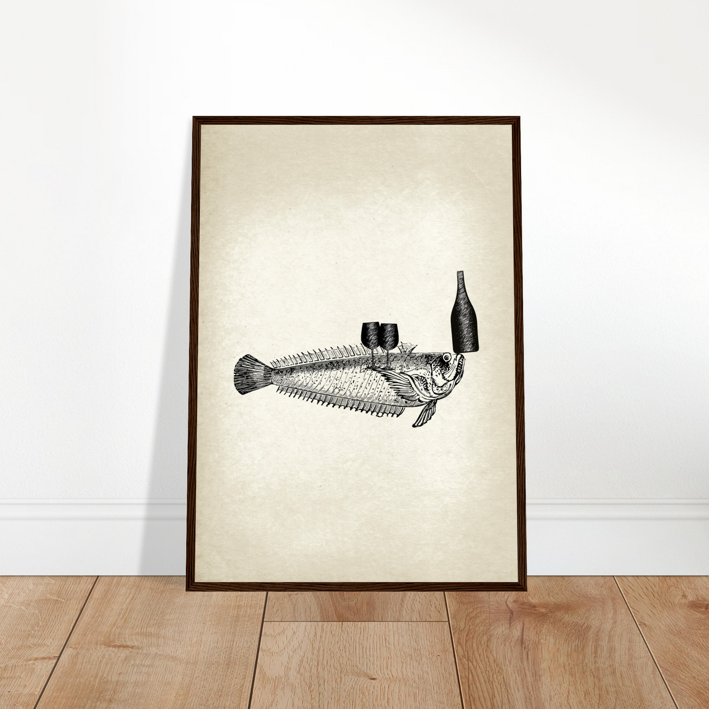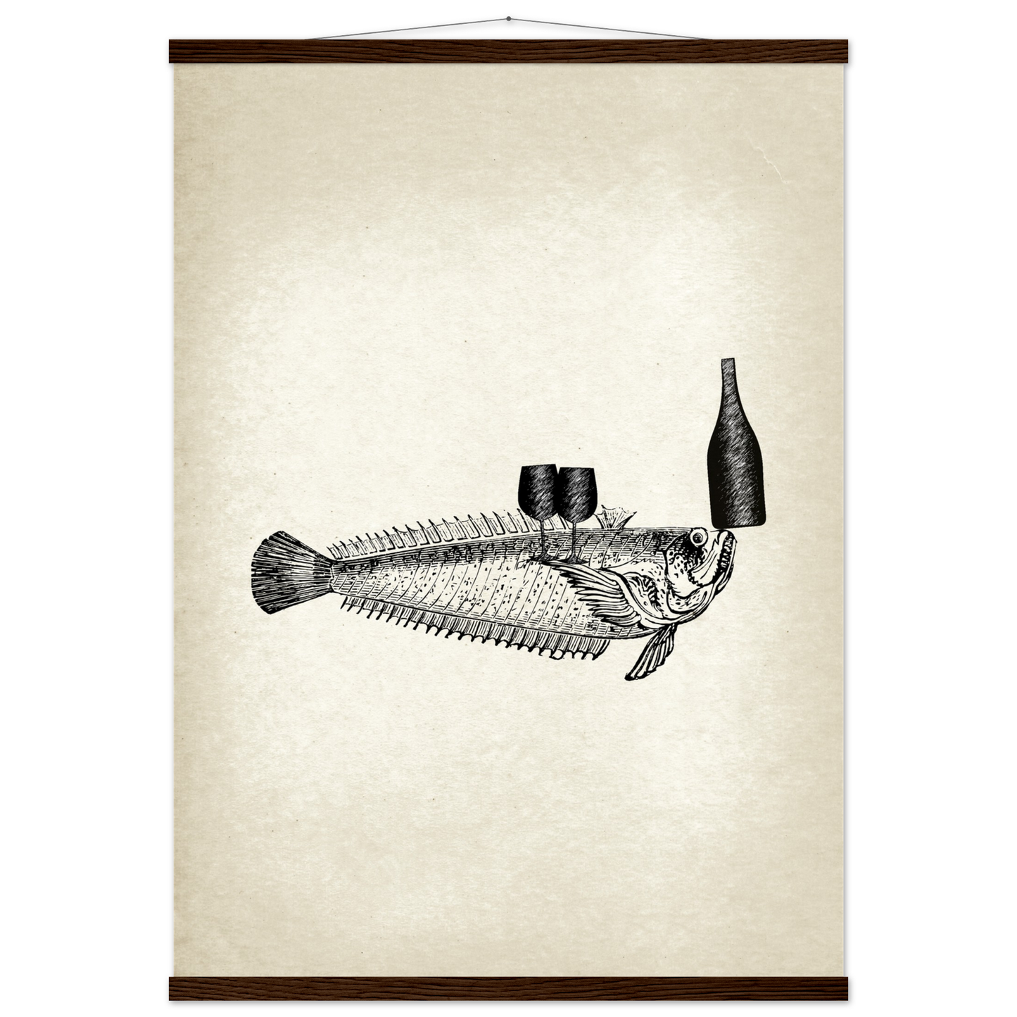 This vintage wall art piece showcases a unique and whimsical image of fish serving wine. Part of the 'Ocean Waiters' art series, this piece adds a touch of humor and charm to any room. Bring a dash of creativity and style into your home with Fishy, Art Series 'Ocean Waiters' Vintage Wall art.