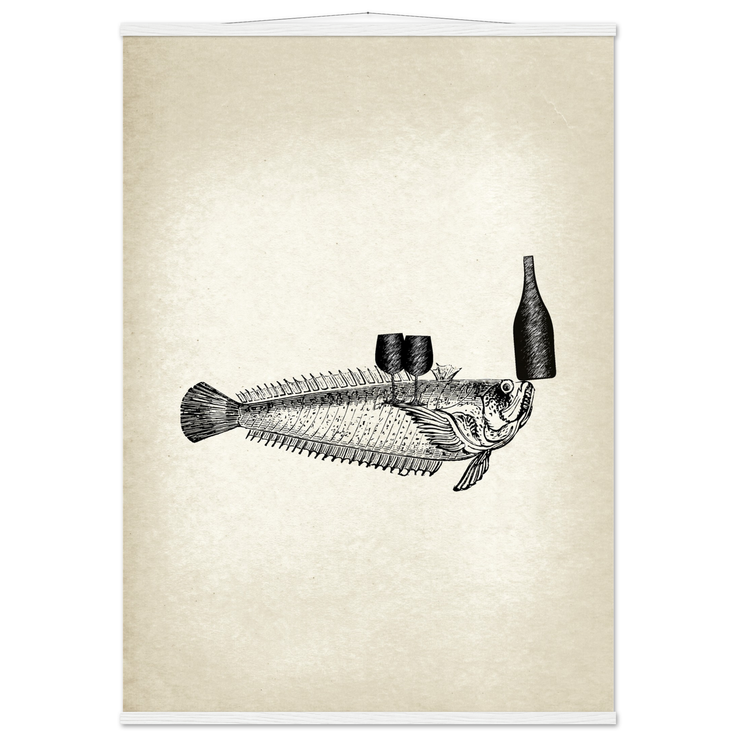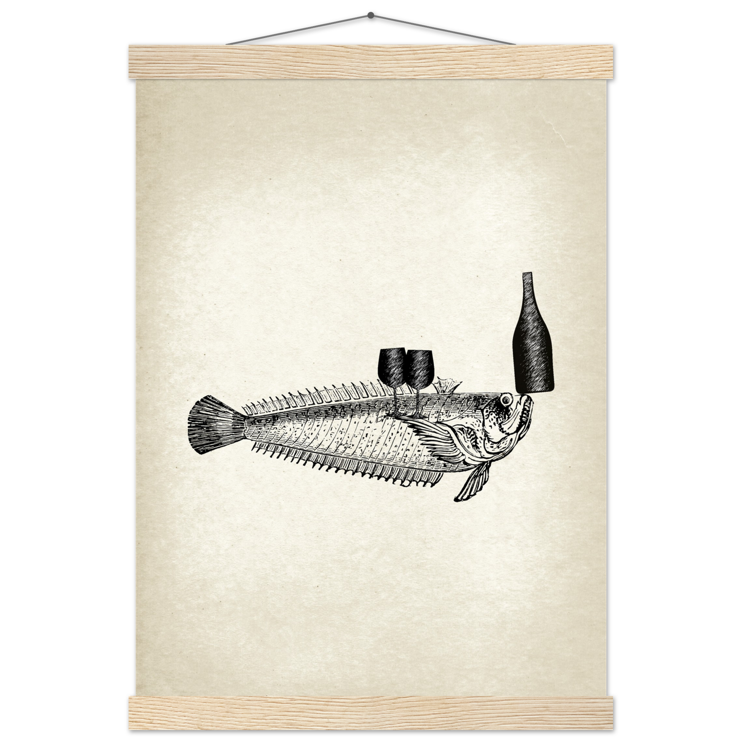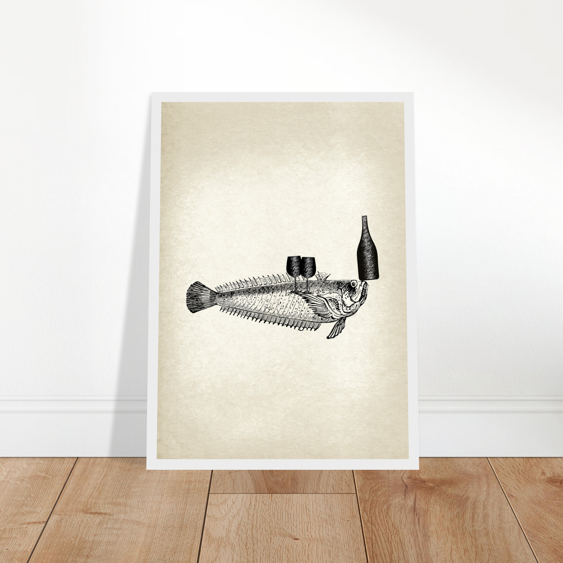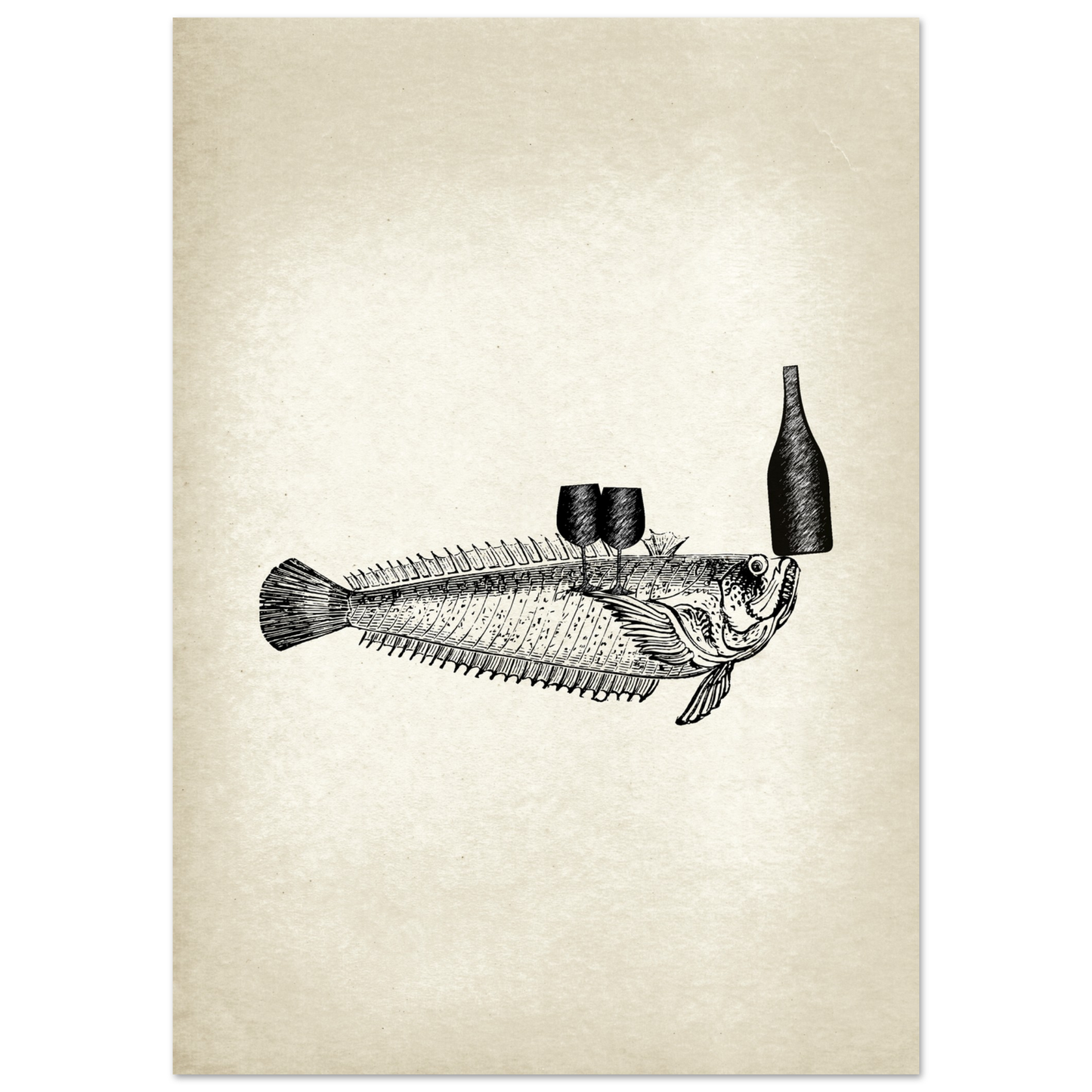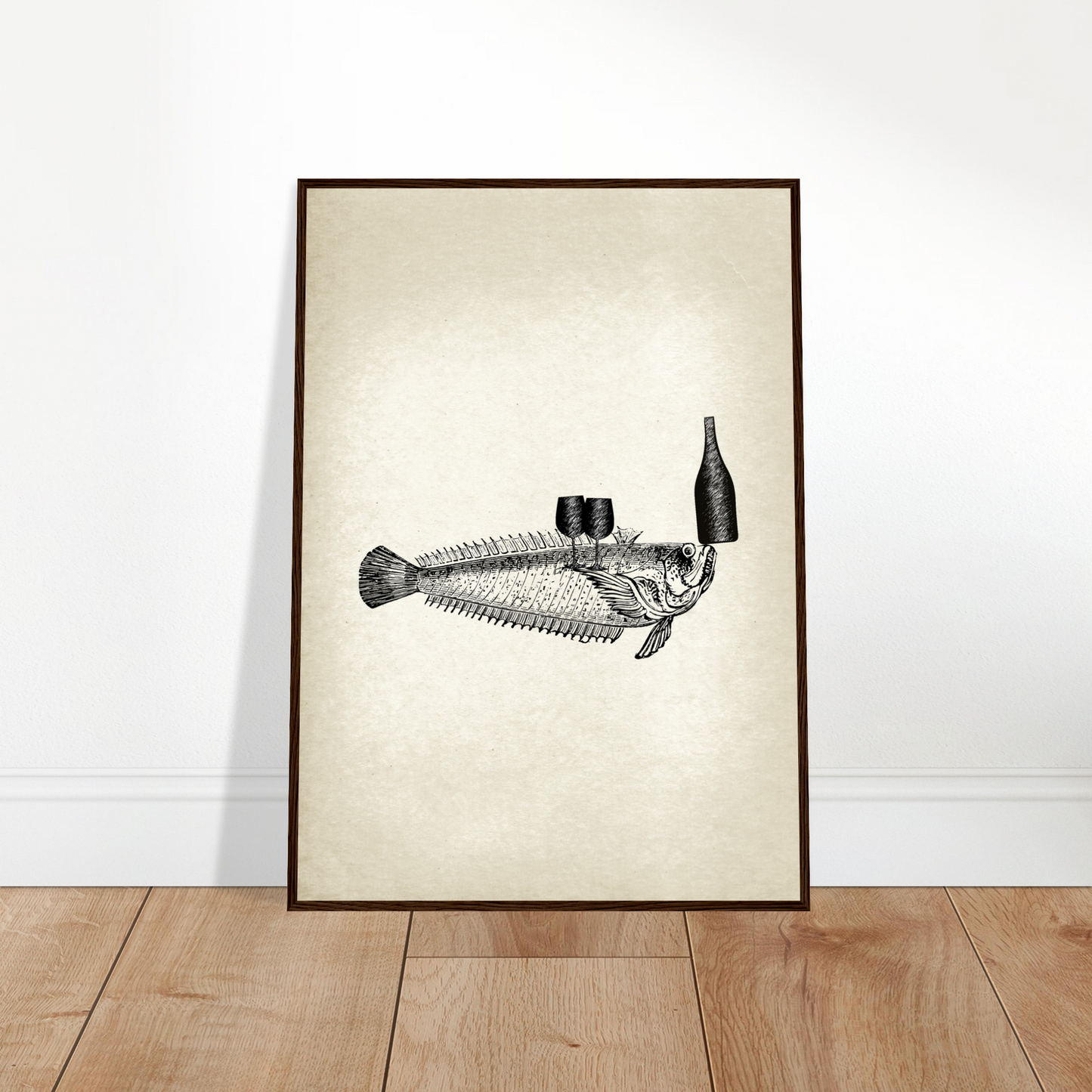 This vintage wall art piece showcases a unique and whimsical image of fish serving wine. Part of the 'Ocean Waiters' art series, this piece adds a touch of humor and charm to any room. Bring a dash of creativity and style into your home with Fishy, Art Series 'Ocean Waiters' Vintage Wall art.